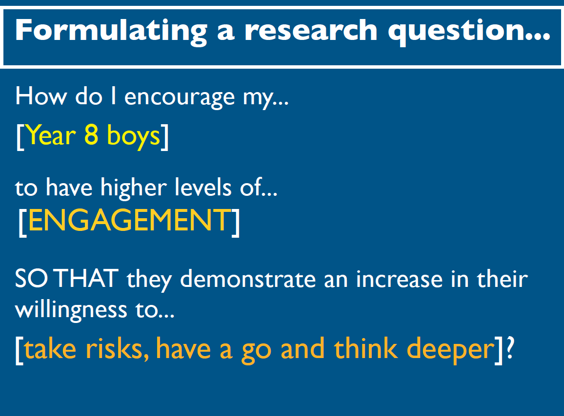 So, when working with a group of teachers recently on an initial enquiry question, “How do we encourage our learners to take more risks?”, we took all of the above into account and ended up re-drafting the question to look something like this: