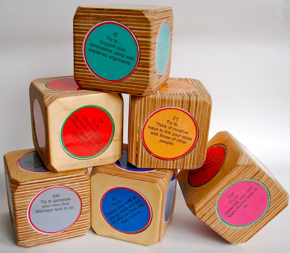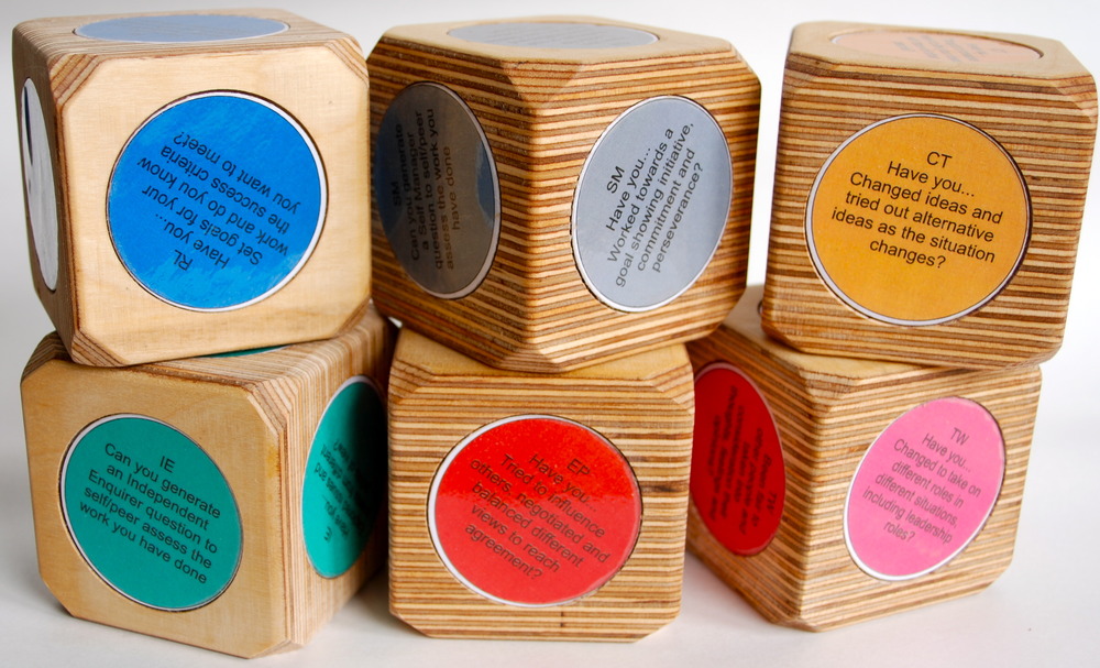 The dice are designed as one per PLTS, in two versions, one set is to be used reflectively with the prompt of ‘Have you…’ and the other set is to set PLTS targets ‘Try to…’. They are made out of wood and are, in themselves, things of beauty! The swatch cards are for teachers to refer to when they are observing learning, to support the integration of PLTS language and the cards are for learners to use to reflect and develop the PLTS as a shared language for learning. We’ll be road-testing them all with our project teams of Confident Communicators on Thursday, when we’re holding the Presentation Day for the project. The day is being run alongside an LA AfL teacher conference, and the teachers will attend some of the presentations as a CPD workshop to have a go at observing the PLTS in action using ‘Observing Learning’ techniques we’re developing.